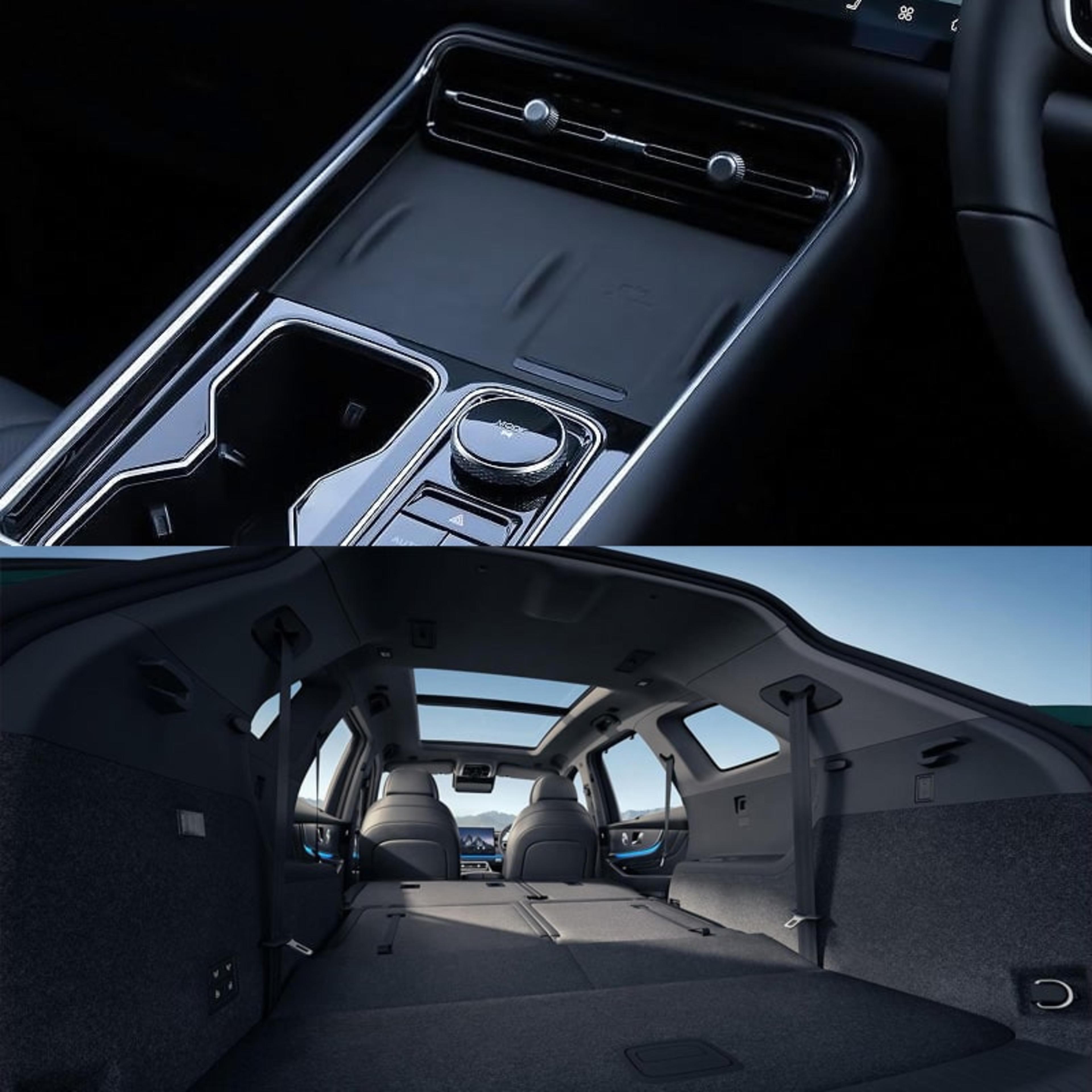 The hardware list is long, but the little touches sell it: HUD to keep eyes up, 50 W wireless phone charging so your handset isn't gasping by school pick-up, and those novelty-turned-useful headrest speakers for the driver.